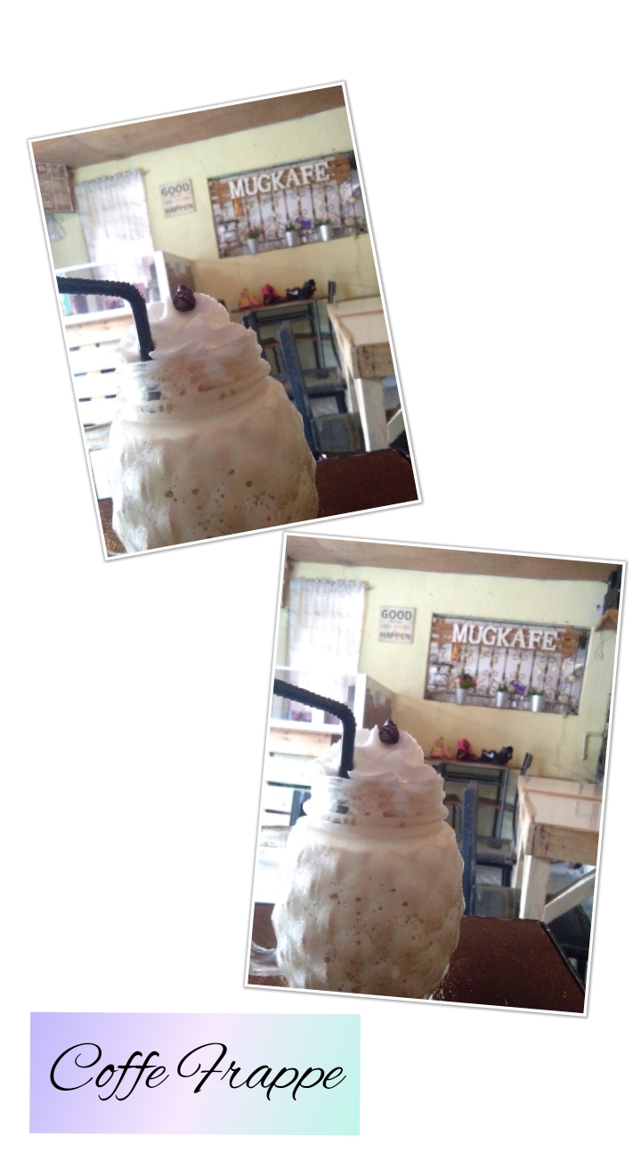 Coffee Frappe is made from crushed ice with coffee powder and topped with whipped cream.